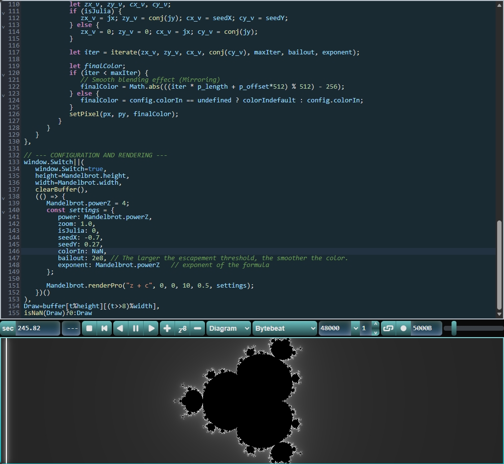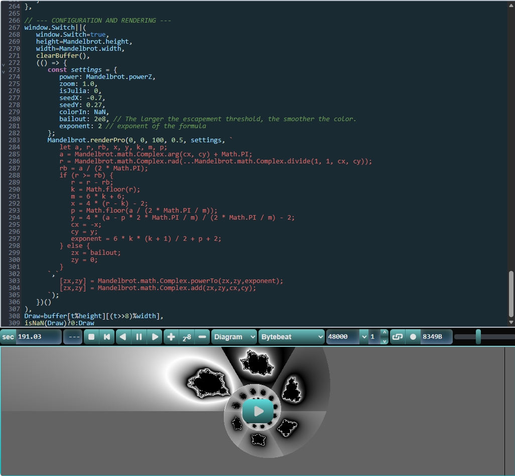 pretty much all these bytebeats are c-compatible, since i haven't completely learned javascript functions yet and all that stuff