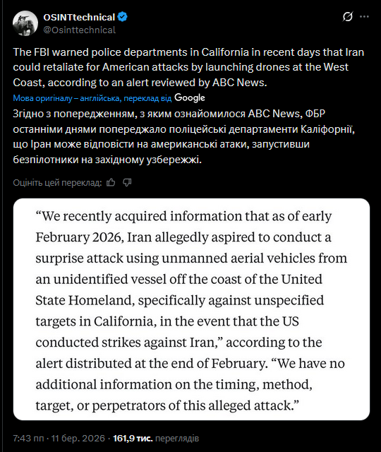 🇮🇷 Іранські дрони та ракети атакували країни Перської затоки, — CNN (https://www.cnn.com/world/live-news/iran-war-us-israel-trump-03-11-26?post-id=cmmms0kg500003b6u8p4xqgmt)
