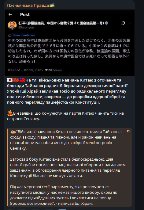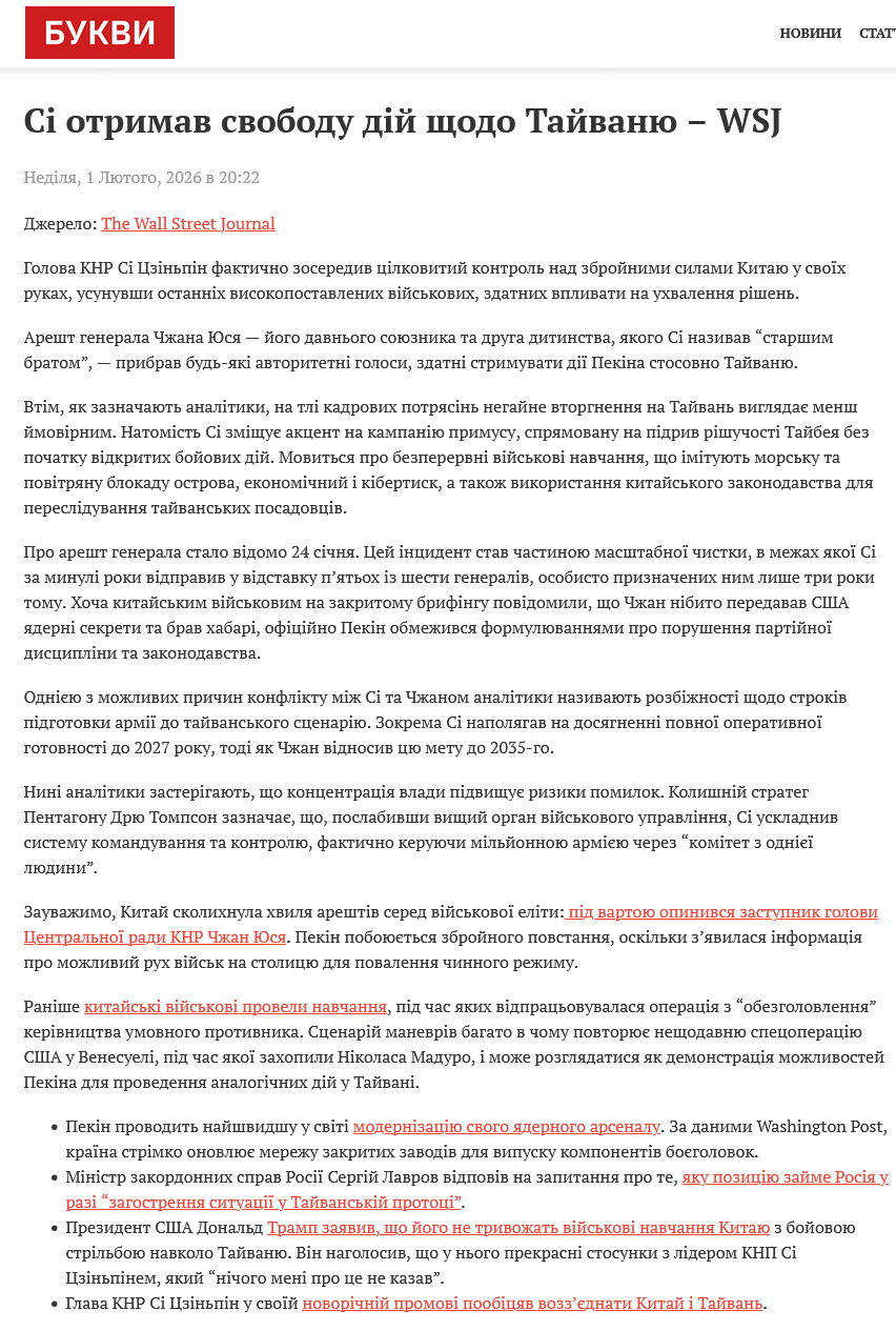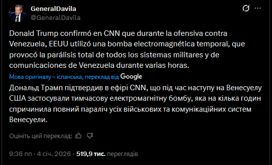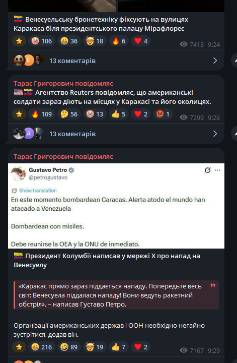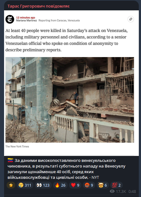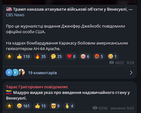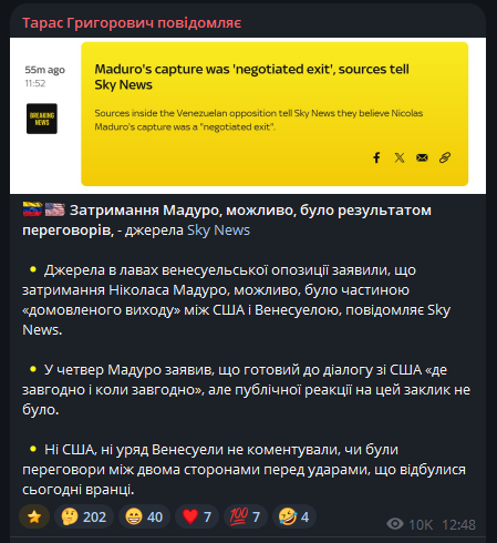 Реакція Китаю офіційно поки відсутня, однак важливий сигнал: приблизно за 10 годин до ударів Мадуро зустрічався з посланцем Сі Цзіньпіна, що може свідчити про попередні консультації або спробу дипломатичного страхування.