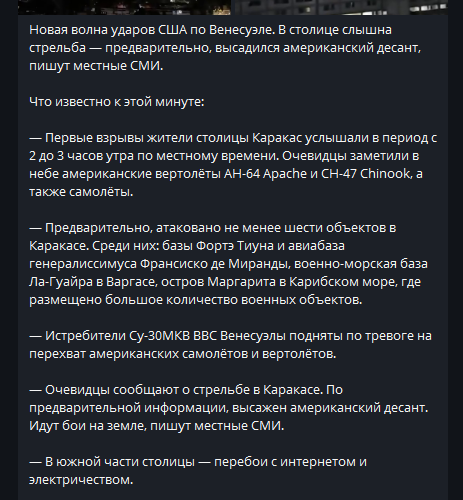 🇻🇪 ВЕНЕСУЕЛА: Початок наземних ударів США. Каракас під атакою