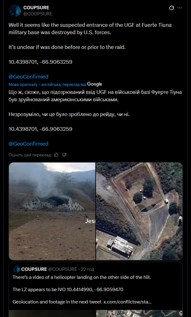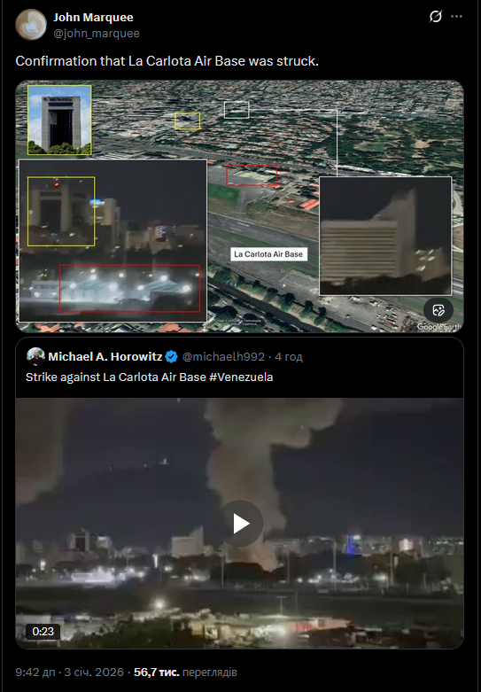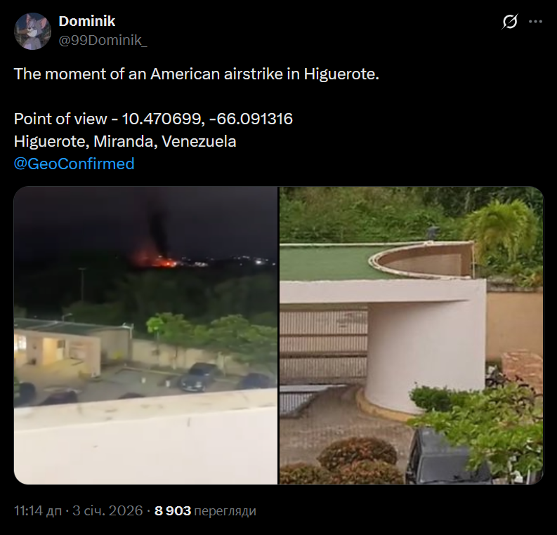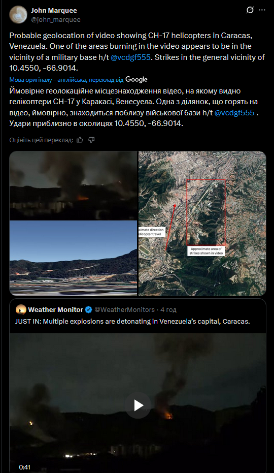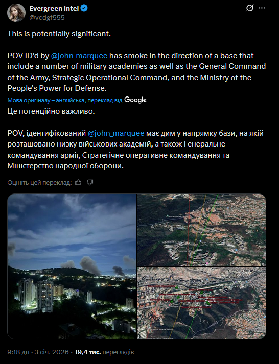 🔹 Ударів зазнали центри влади чавізму в Каракасі, зокрема райони, де проживають високопоставлені військові та фігуранти так званого Cartel de los Soles.
