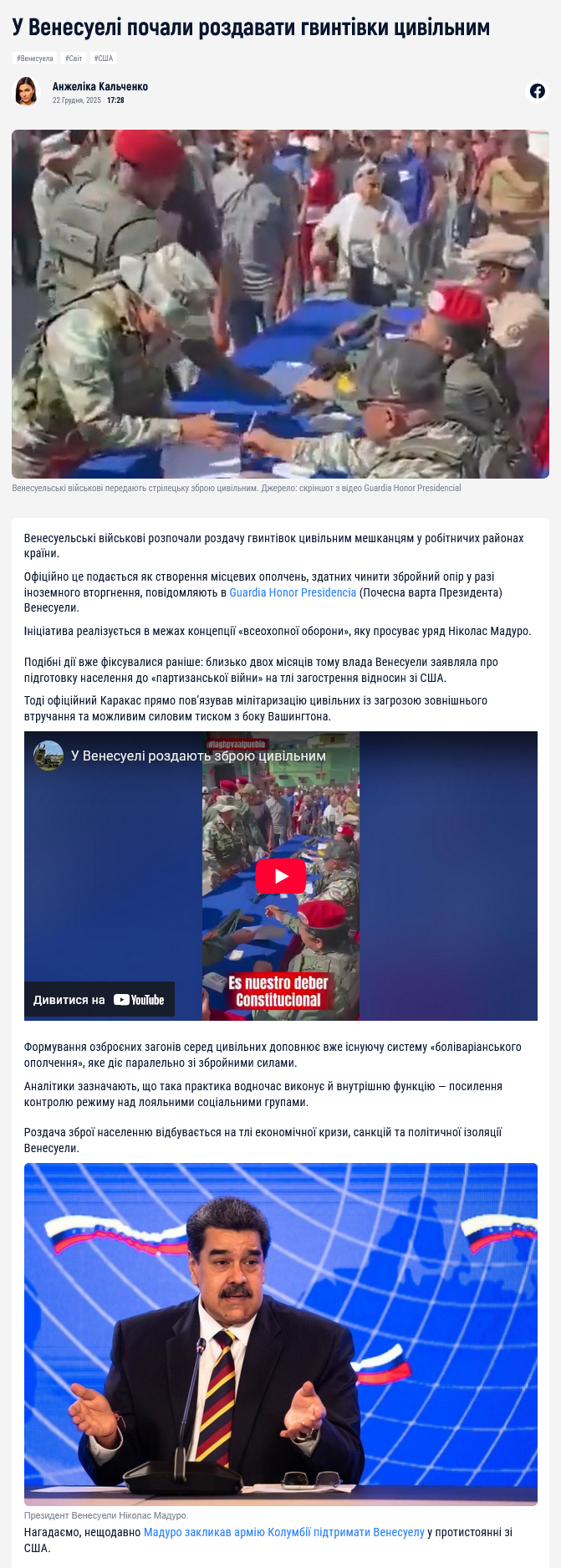 Влада Венесуели дозволила використання військової зброї так званими “цивільними організаціями”. Фактично йдеться про: