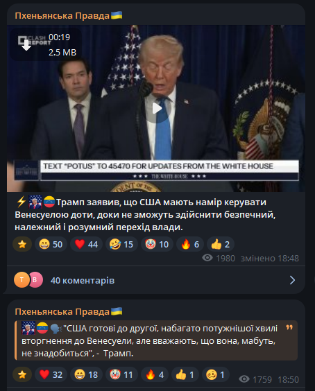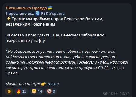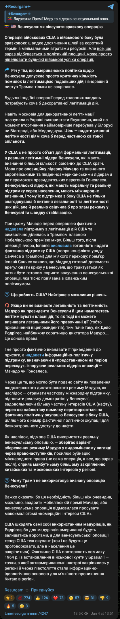 Режим Мадуро, своєю чергою, демонструє паніку, втрату інформаційного контролю та ставку на внутрішню мілітаризацію, що лише підвищує ризики хаосу та неконтрольованої ескалації.
