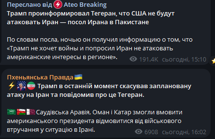 🔹 Надходять численні повідомлення про авіаудари США по:
