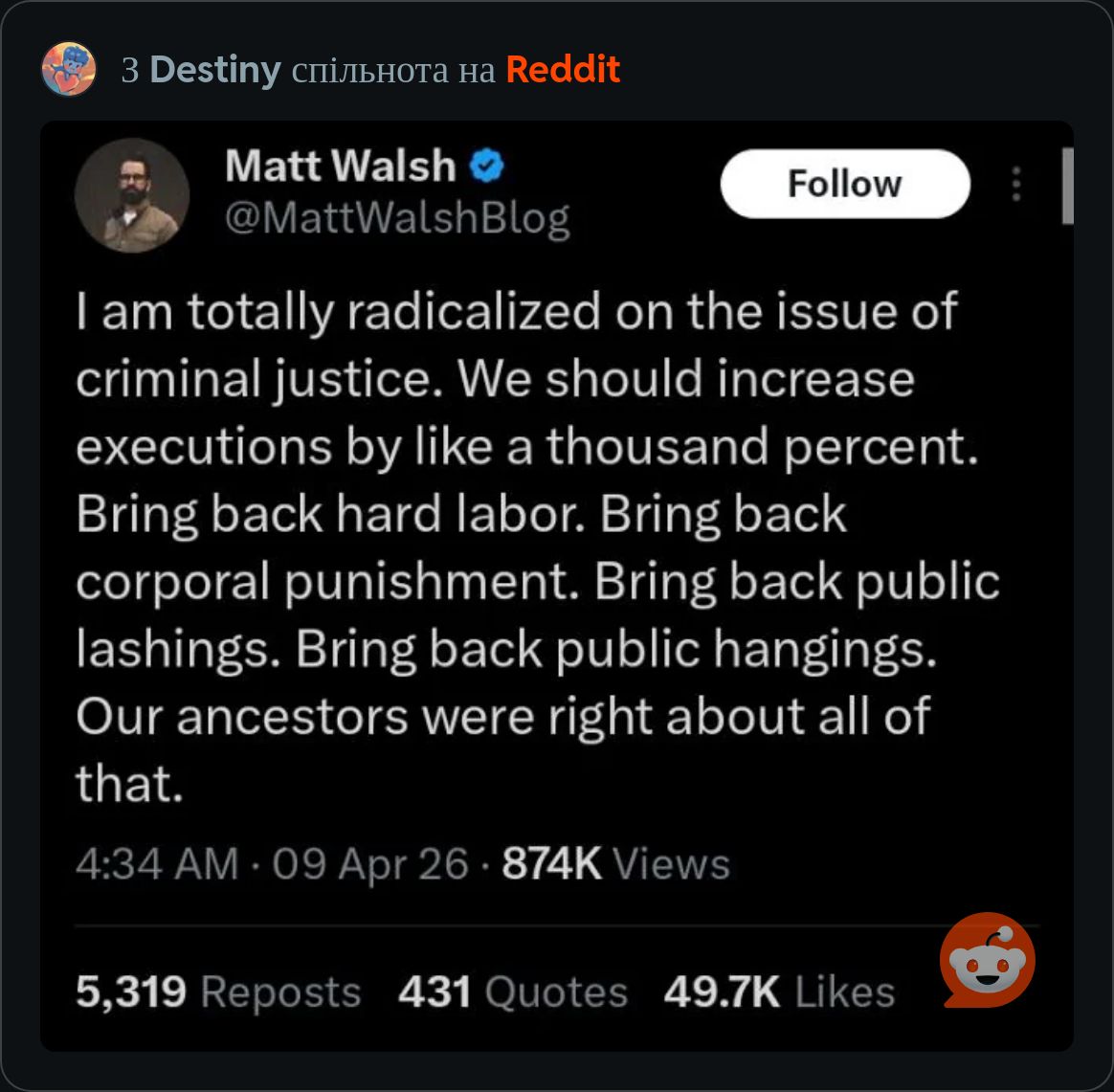 Новый Грогу 10.04.26 Fri 04:45:46 № 99213 >>99092Я ридонли-мимокрок и пощу тут дай бох раз в несколько месяцев, но поясню по себе. По степени левачества я б себя поставил где-то чуть-чуть правее монтенегры, "за трапов и двор стреляю в упор" это самое. Но на терки Израиля с Палестиной мне на самом деле пiхуй, т.к. с одной стороны у нас Быня Нетаньяху который с хуйлом рукопожатный, а с другой - как ты тут >>99133 подметил, лица, которые в ином случае меня бы с крыши сбросили, да и против "труЪ-хамасят" действий не предпринимают, так что хули их дефать. Шо то хуйня, шо это хуйня.