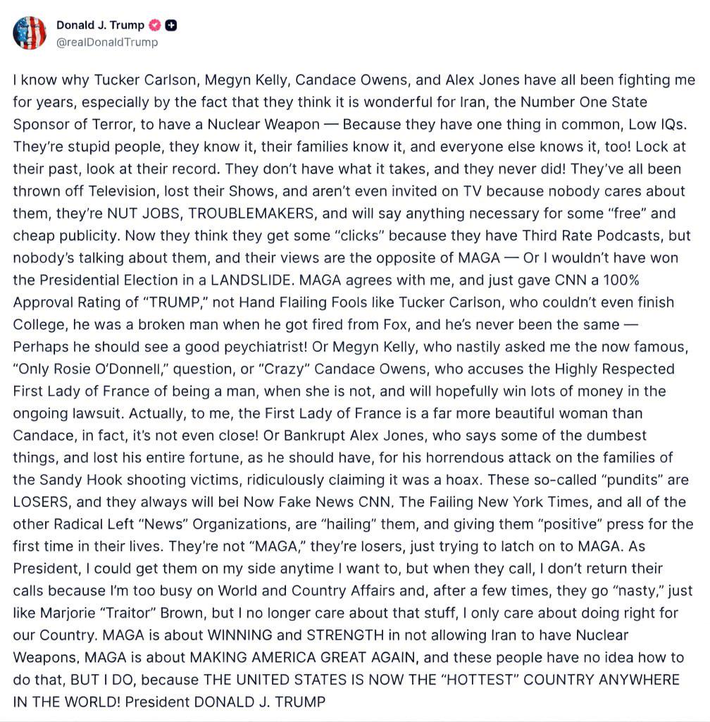 Грубоватый Хиппи 10.04.26 Fri 00:00:14 № 99194 Трампло только что вылил ведро говна на бывших мага типа какера карлсона и тд. Паралельно с этим Ник Фуантэз в очередной раз призвал своих гройперов не голосовать за нынешних республиканцев ПРЕДАТЕЛЕЙ в 2026 и в 2028 если не будет АМЕРИКАФЁРСТ кандидата. Раскол на лицо, продолжаем зоонаблюдения. ----Касательно Израиля, без поддержки США ему будет пизда за лет 5-10, а рейтинги поддержки в США снижаются буквально по месяцам, уже перевалили в пользу палесов. https://news.gallup.com/poll/702440/israelis-no-longer-ahead-americans-middle-east-sympathies.aspxДумаю ушастый поц всё пынямает и просто пользутеся окном возможностей, чтоб вьебать всем вокруг по максимуму, чтоб можно было чуть дольше подышать потом.Понятно, что для того чтоб просто рейтинги превратились в официальную позицию нужно ещё лет 5, всё таки большая инерция и куча лобби групп, но если не оформят угомон в ближайшие годы, то оно произойдёт неотвратимо.