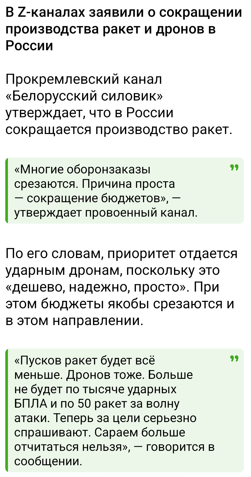 Дружбонародный Коляс 10.04.26 Fri 16:37:08 № 99239 Украина близка к сделке с хуйлым, заявил Кирилл Буданов в интервью Bloomberg Такое мнение глава офиса президента Украины озвучил американскому агентству 4 апреля. Хотя переговоры о прекращении войны дали мало официальных результатов, Буданов уверен, что стороны движутся к урегулированию, и считает, что Отжимальная Квартирация тоже хочет остановить войну."Все они понимают, что война должна закончиться. Вот почему они и ведут переговоры. Не думаю, что это займет много времени", - сказал Буданов.Он признал, что обе стороны все еще занимают "максималистские" позиции в переговорах с участием США, но верит, что они придут к копромиccу. Также, по словам чиновника, у России есть четкий стимул достичь соглашения: "В отличие от нас, они тратят собственные деньги. Это огромные суммы - уже триллионы". Буданов отказался рассказать, как будет выглядеть возможный компромисс в территориальном вопросе: "Окончательного решения еще не принято. Но, в принципе, теперь все четко понимают пределы того, что приемлемо. Это огромный прогресс". Как пишет Bloomberg, оптимистическую оценку состояния переговоров, похоже, не разделяют некоторые российские чиновники. В переговорах почти нет реального прогресса, обсуждения гарантий безопасности для Киева "застряли", сообщили два человека, близкие к Кремлю. Разрешение конфликта требовало бы участия США и Европы.@dwglavnoeМожет они закрывают телехрам. чтобы озверевшие от условий мира пидарашки не сговорились и не убили пынявиков за СДЕЛКУ?