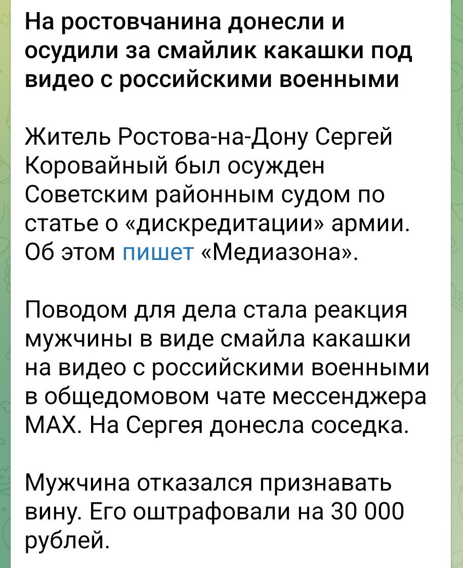 Утомленный Господин 05.04.26 Sun 01:21:24 № 98464 >>98463Если так, то среди z-каналов должна идти нешуточная конкурентная борьба за конечный ресурс (донатеров)И админы одних z-каналов, используя админресурс, должны пытаться посадить (или навесить иноагента) на других