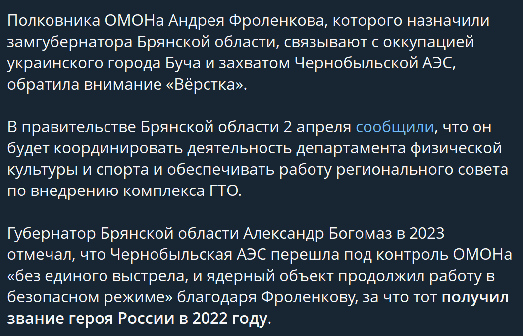 Уравновешенный Вьюн 13.04.26 Mon 08:59:24 № 99520 676 (1).jpg(94.36KB, 853x1280) 676 (2).png(74.78KB, 1056x679) 676 (1).png(47.44KB, 1033x373) На должность замгубернатора Брянской области назначили военного, которого связывают с захватом Бучи и Чернобыльской АЭС