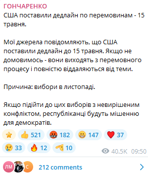 Адміністрація Трампа дала зрозуміти Україні, що гарантії безпеки з боку США залежать від того, чи Київ спочатку укладе мирну угоду, яка, ймовірно, передбачатиме поступку на Донбасі на користь Росії, — The Financial Times (https://www.ft.com/content/8ca0d4fd-fdfd-4aa3-a3a2-90be00d55b9d) за словами восьми осіб, обізнаних із переговорами.