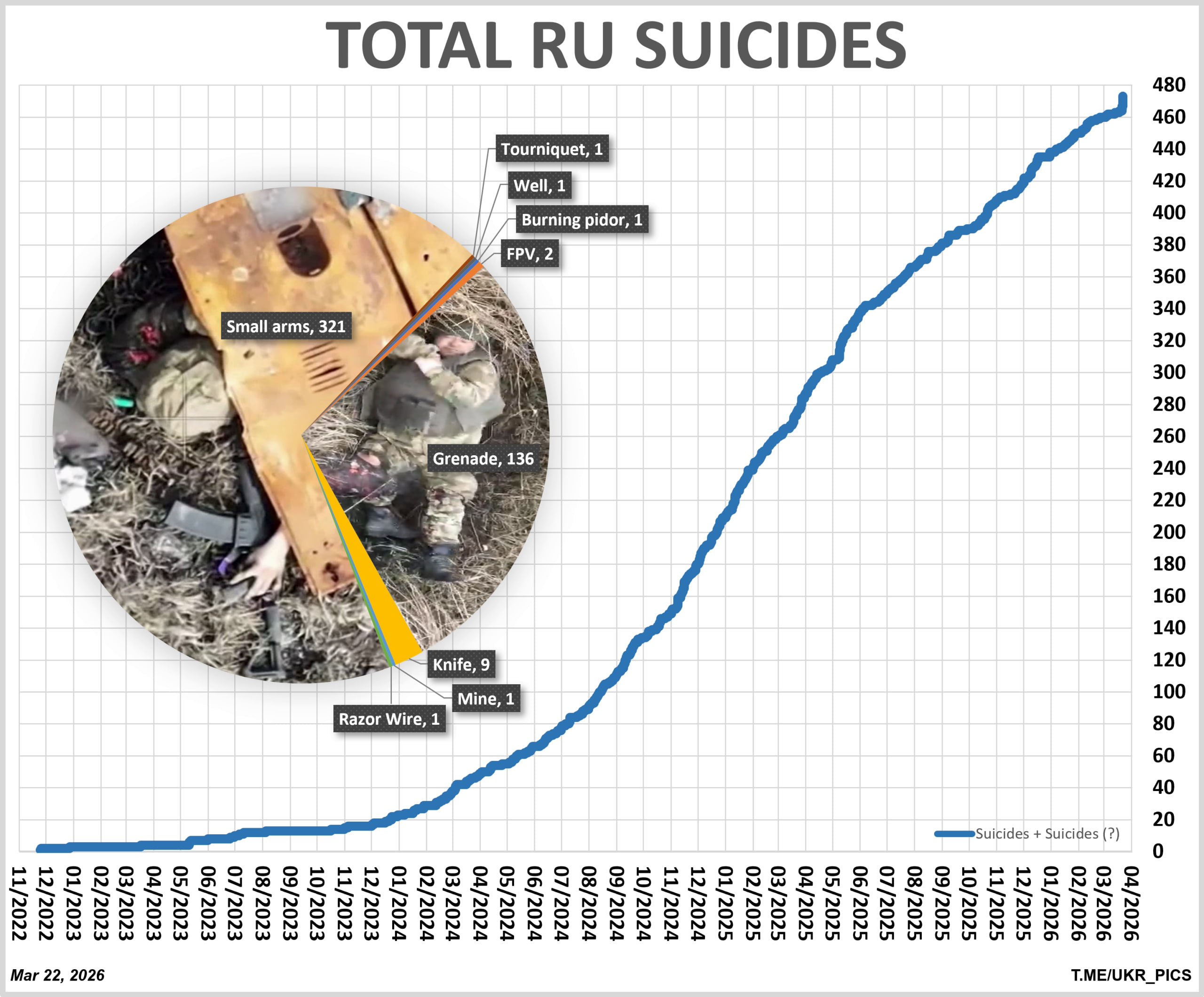 Никанор Юзяк 23.03.26 Mon 21:35:33 № 494562 смішнявка колобок роздумує №3.jpg(20.77KB, 640x640) Зараз на реддіті є список з 540 самозабоїв руснявого скота на війні. Це тільки ті, що попали на камеру. При чому темпи самозабоїв зростають. З української сторони таких відео майже нема. Як пояснюється ця різниця? Що мотивує? Позбавлення від страждань? Чи може так бути, що русня підсвідомо хоче на війну, бо там їх можуть позбавити від страждань?