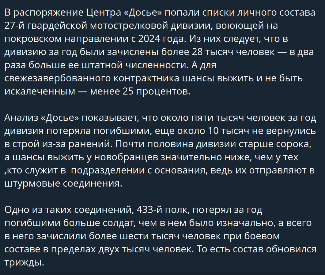 Serg Marco Войнило Чугуй 25.03.26 Wed 12:48:34 № 494938 5 За ці пару днів поспілкувався з декількома людьми в бплашному двіжі з 3 корпуса, на який нещодавно була навала, яку вони кінчили здебільшого дронами. Чесно сказати, ситуація вражаюча.Треба виділити рівень координації підрозділів та загального рівня пілотів, які витримали таку навалу. По словам пілотів та напрямківців, а також офіцерів, пілоти яких брали участь- це була бойня. Просто знищення нон-стоп, поки знищувати стало нема кого.Ну і що це було, запитаєте ви. Чому здебільшого до цього була тактика просачування, а потом неочікувано всіх зібрали та кинули в штурм на броні?Є інсайд, що туди приїхало якесь керівництво і почався разнос за території, які вони "захопили в кредит". Тобто генерали з цього напрямку передавали наверх ситуацію по фронту яка сильно відрізнялася від реальності.Не ясно що конкретно там коїлось, та росіяни зібрали все що в той момент могло штурмувати, і кинули вперед. Але розвідувально-ударні спроможності в тому секторі знали що робити з такою загрозою, ну і ось результат.Тепер в керівництва Пыническая Рухнумия на цьому напрямку вже інші проблеми, крім "територій в кредит" добавилось і вщент знищене штурмове угруповання, на разйоб якого дивиться весь світ. Але ситуація досі в динаміці, росіяни не відмовились від ідеї покращити своє тактичне положення не враховуючи втрат особового складу, так що побажаємо хлопцям гарного полювання в майбутньому, бо це те, що на них очікує.