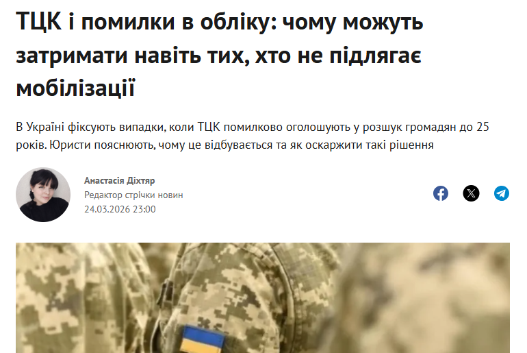 Бонь Загорюй 22.03.26 Sun 11:46:22 № 494304 3 90% справ ТЦК проти водіїв-ухилянтів зупиняється ще до розгляду по сутіПопри гучні заяви під час ухвалення закону про мобілізацію, механізм обмеження права керування автомобілем для порушників військового обліку на практиці майже не працює. Замість масових санкцій суди фіксують мізерну кількість позовів від Територіальних центрів комплектування (ТЦК), причому абсолютна більшість із них розвалюється ще на етапі подачі документів. Про це повідомляє Opendatabot.https://minfin.com.ua/ua/2026/03/20/170345610/https://opendatabot.ua/analytics/tck-fines-2025-12