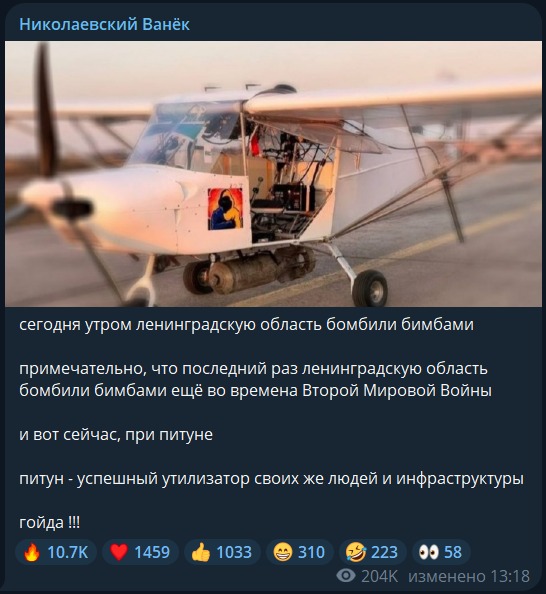 Готко Гаценко 25.03.26 Wed 14:55:13 № 494971 1 >>494954>>494907Нормально так прощупали. Причому 250кг чугунієм на літачку лол >>494951. Цікаво як воно долетіло? невже все ппо вже перетаскали в крим і на фронт?