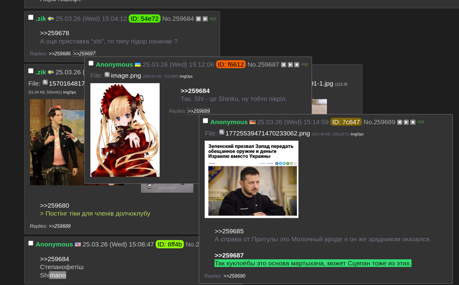 Руслан Демкович 25.03.26 Wed 17:28:23 № 495014 1 >>495013Якись шизоїдний розлад чи інші проблеми з кукухою