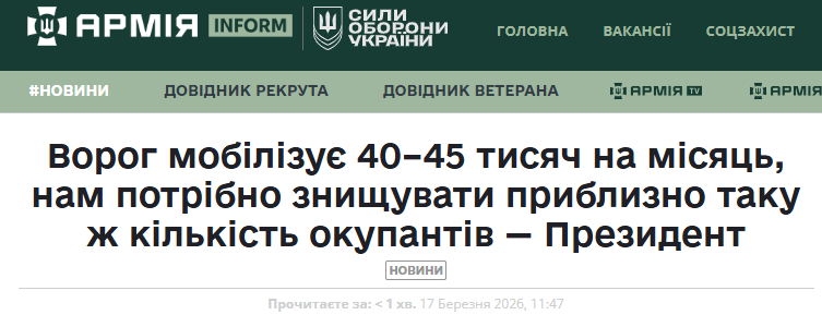 Ахила Бродацький 03.04.26 Fri 11:53:33 № 497105 >>497104>Мобілізуєш 45-річних ментівських пенсів, прокурорів, своїх кентів з кварталу і т.д.Нашкребуть таких пару десятків тисяч, що дальше? Чи типу це тебе змотивує перестати бути ухилянтом?
