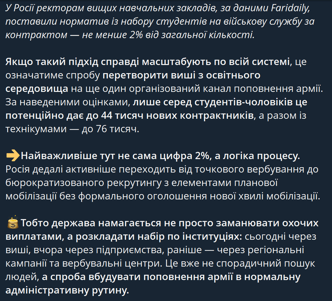 Ракита Гарбарук 05.04.26 Sun 16:35:19 № 497725 2 >>497722Хуй знає можливо і так, на мою думку, в більшості тих хто ще не армейкі є тільки віра в бабло і схемки/мутки пошук лохів, тому буде мати не значний ефект така пропаганда