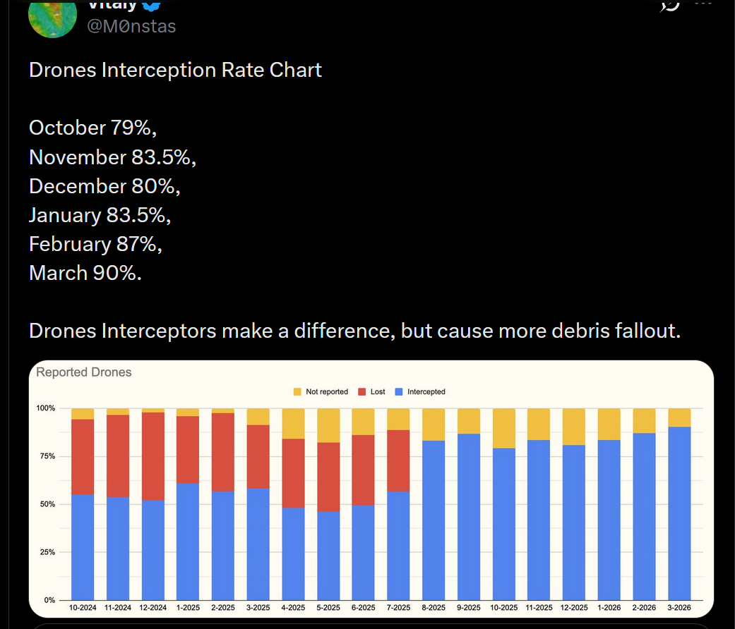 Ракита Гарбарук 05.04.26 Sun 16:39:07 № 497727 >>497726В прифронтових містах/селах не раз бачив як пісюнами збивали шахеди і гербери, видовище звісно піздєц і кожен раз успішно, а МВГ як зазвичай пуляють десь туди, таке відчуття наче по приколу їм потсріляти