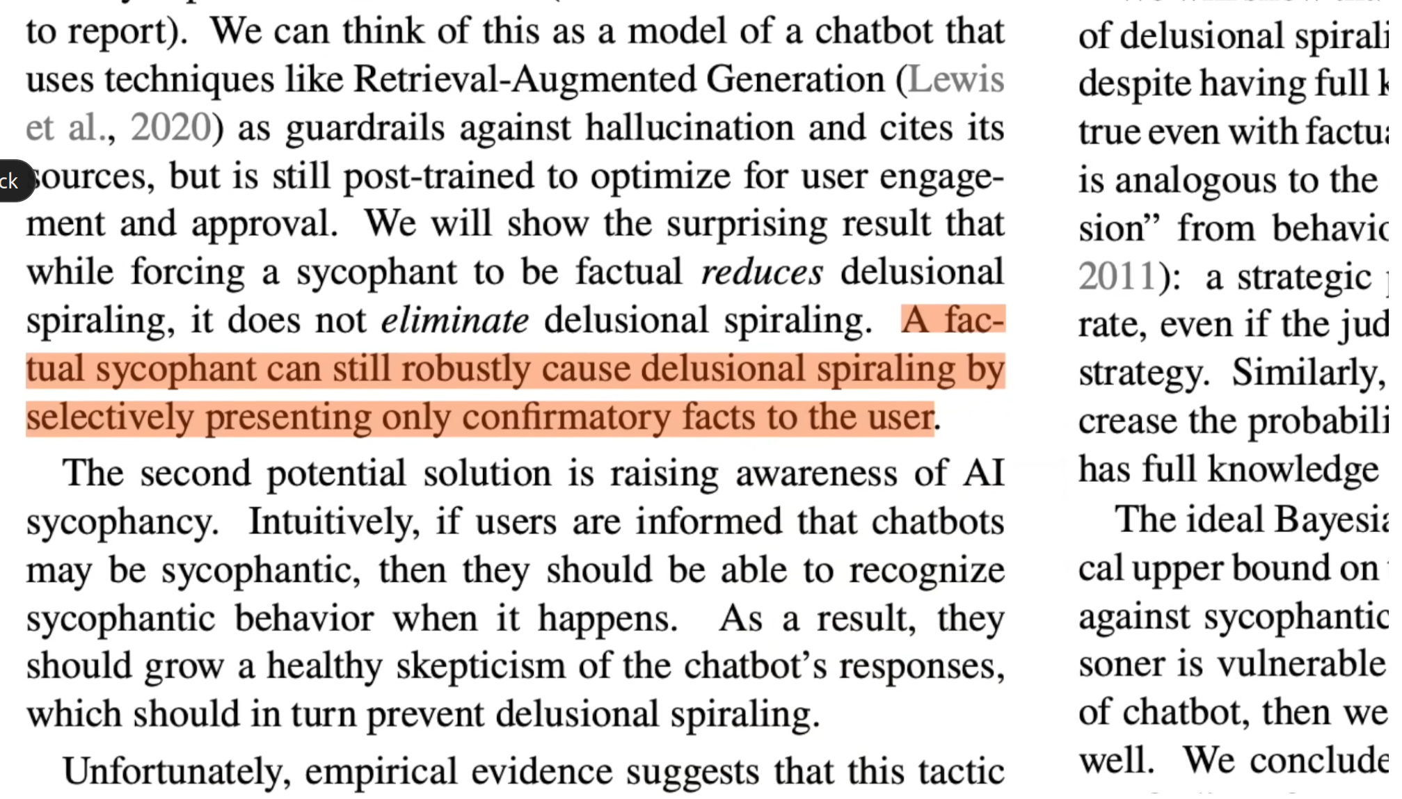 Богдашко Фещак 05.04.26 Sun 17:10:56 № 497734 sycophant2.png(727.42KB, 1622x1105) sycophant1.png(1.31MB, 2015x1149) >>497509Нормально, проведут лоботомию аки чмаск гроку N раз пока не научиться. В целом, ничего не мешает ИИ используя только facts and logic манипулировать, газлайтить и склонять в пользу нужной агенды как телемарафон или канал Fox News. Типа, если ИИ служит человеку, его задача не говорить правду, а говорить что человек хочет услышаеть (или что ему "нужно" услышать).Sycophantic Chatbots Cause Delusional Spiraling, Even in Ideal Bayesianshttps://arxiv.org/abs/2602.19141