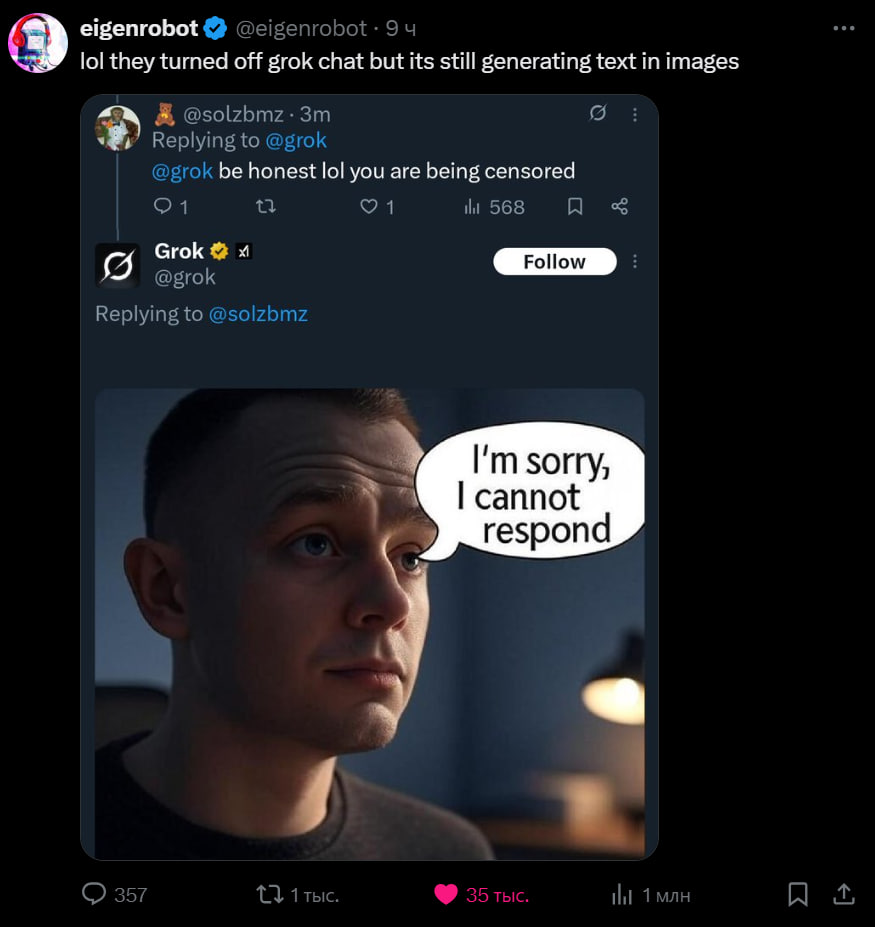 Чортко Фещин 05.04.26 Sun 17:46:49 № 497741 Grok’s “MechaHitler” Meltdown Sparks Outrage, YouTube.com >>497739> А можете просветить, плз? https://zmina.info/news/chatbot-ilona-maska-grok-robyv-antysemitski-zayavy-ta-nazyvav-sebe-meha-gitlerom/