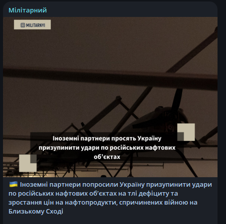 Всевлад Бродацький 05.04.26 Sun 23:20:13 № 497812 5 image.png(1.71MB, 1024x1280) image.png(1.89MB, 1024x1280) image.png(1.96MB, 1024x1280) image.png(1.92MB, 1024x1280) 🪖 Ситуація на фронті — найкраща за останні 10 місяців, — ISWЗазначається, що Сили оборони України продовжують зміцнювати позиції одразу на кількох рівнях — тактичному, оперативному та стратегічному.Зокрема, українські військові досягли тактичних успіхів на південному напрямку, що спричинило ефект доміно і на інших ділянках фронту. У результаті російські війська змушені розриватися між стримуванням контратак і перекиданням ресурсів на інші напрямки.