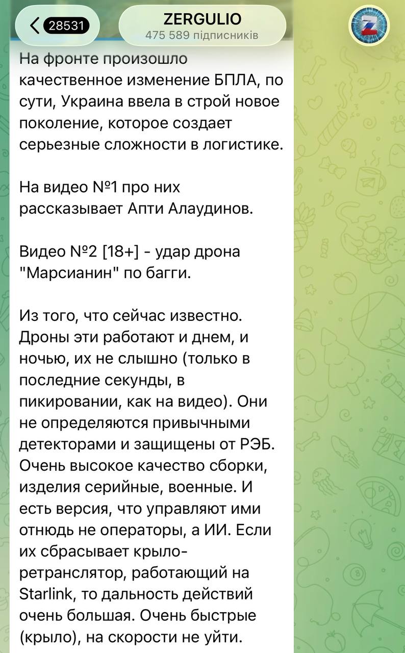 Малик Гаценко 06.04.26 Mon 00:44:44 № 497830 4 >>497828Бля все ще гірше.Ця колона йшла розблоковувати позиції в покровську, які були (і є) майже в оточенні. Людей до сих пір тримають і стирають в декількох домах на окраїні покровська в майже повному оточенні, де на них спокійно полюють русняві дрони, тільки щоб докладувати наверх що ми ще тримаєм 0,0001% покровська. Лампасний ідіотизм руснявого рівня. Якщо не гірше.