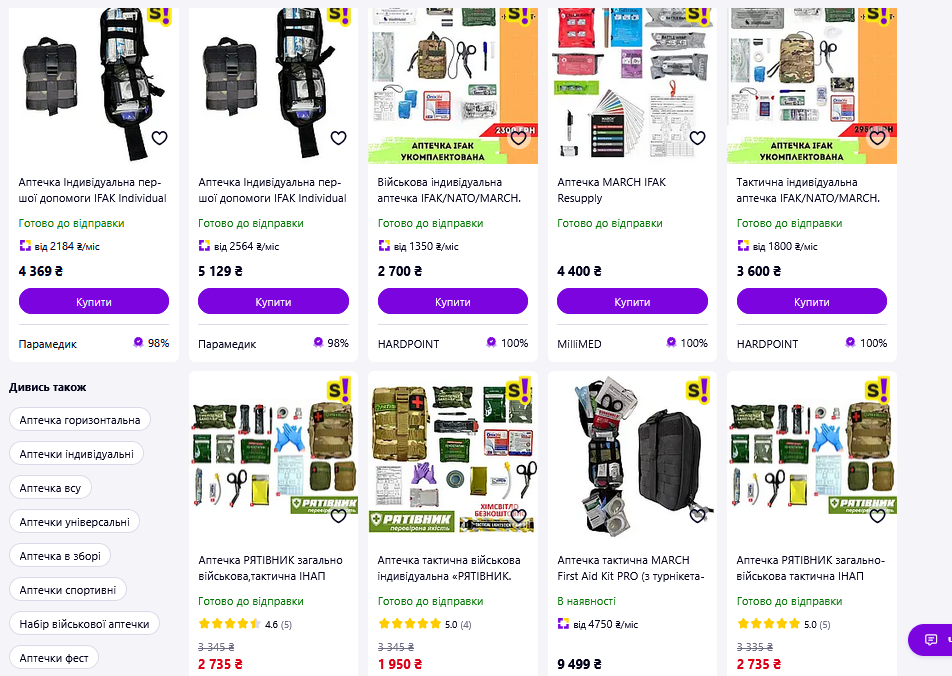 Войніг Янушевський 19.04.26 Sun 01:08:31 № 501462 >>501461Отакого рятівника за 3к в принципі буде достатньо з собою возити, або краще без турнікетів, чи з одним, і докупити туди окремо два ката, бо тільки вони 3к будуть, хз що там в середині але точно таке собі. З того що бачу на пікчі то рятівник за 2к і два ката окремо я би брав