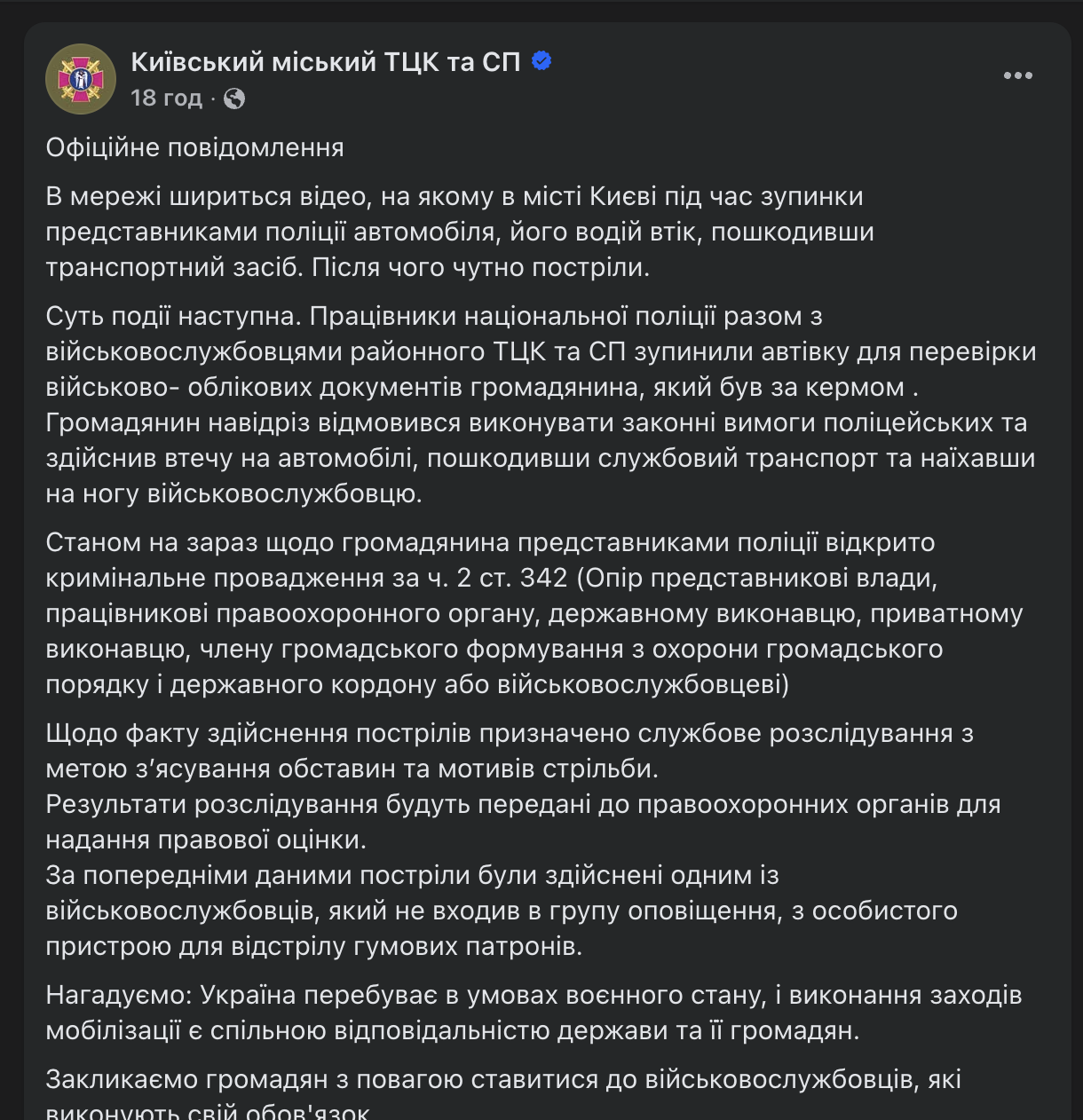 Жаданець Гасюк 18.04.26 Sat 22:43:44 № 501388 >>501385>Якщо б у ухилянтів була зброя, то вони б просто розстрілювали групи оповіщення, і ми б давно опинились в окупації.Ты не можешь этого знать так как это не произошло