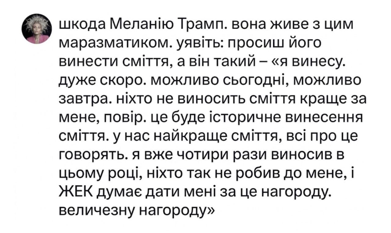 Валентин Попадюк 17.04.26 Fri 01:28:34 № 500806 >>500676>офіційно визнавши етнічних українців титульним корінним народом.«Тот кому нужно постоянно говорить «я король» на самом деле королем не является»(С) Нахуя унитарному государству где 80% украинцы такой закон? Опять копируют опыт старшего брата? Или это так гоев успокаивают после принятия закона об антисемитизме и подготовка к завозу раджетов.