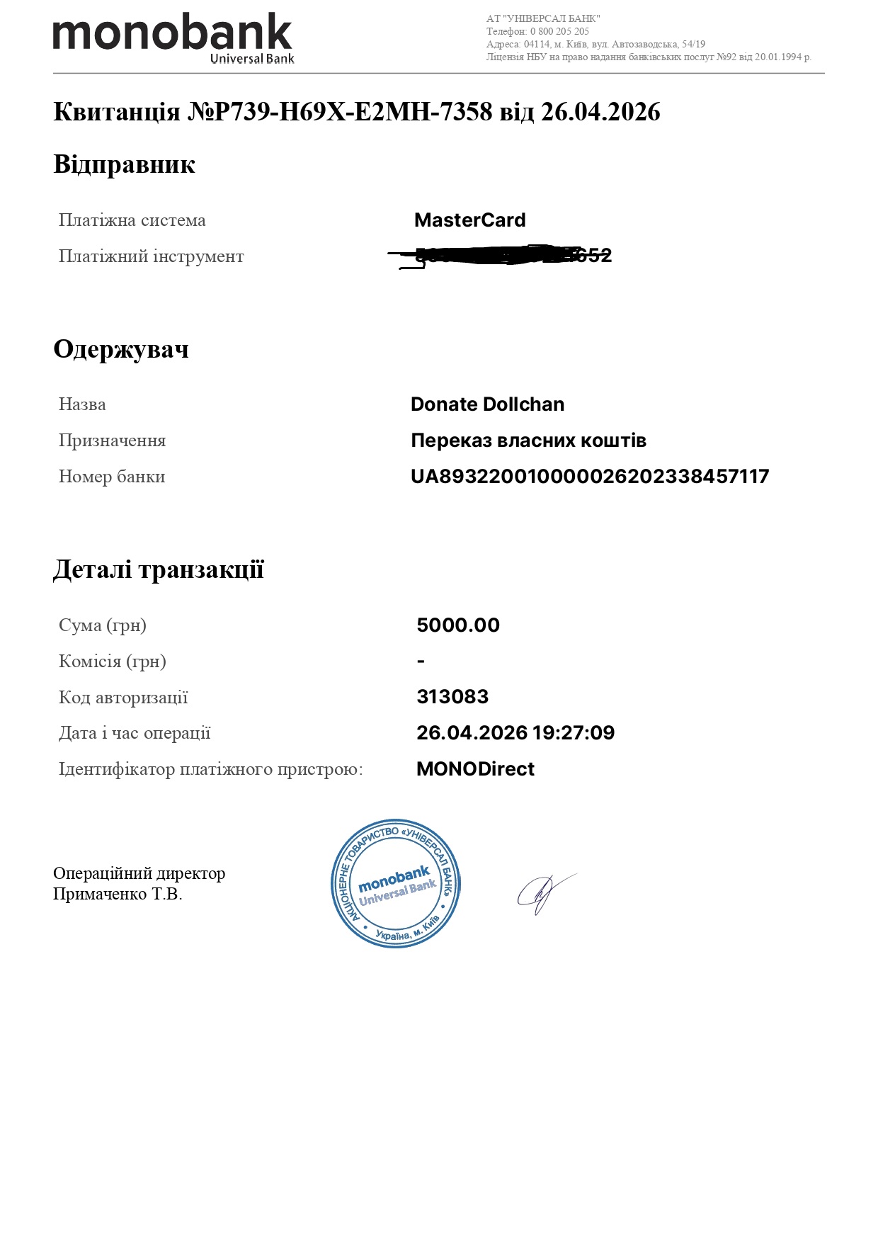 Гук Бродацький 23.04.26 Thu 15:51:43 № 502680 >>502679>WAGEОце воно, просто в мене банк так пише, в мене не Приват