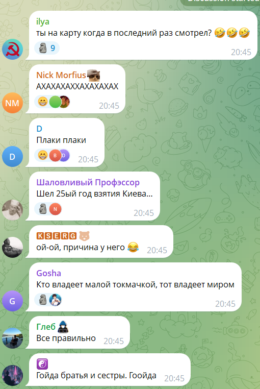 Жацко Янушевський 27.04.26 Mon 21:36:00 № 503568 1 Погуглив про цей ТГ канал а він підарський, оце так несподіванка.