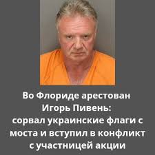 Ратислав Кукуріка 24.04.26 Fri 20:50:58 № 502960 IMG_20260424_205030_928.jpg12.45KB, 289x362 Выходец из России, проживающий в Семиноле, арестован за кражу украинского флага с путепровода в Пинеллас-Парке.пидорусскоязычный житель Флориды оказался за решеткой по обвинению в совершении тяжкого преступления: по данным следствия, он сорвал два украинских флага, закрепленных на автомобильном путепроводе, и несколько раз толкнул мирную участницу протестной акции, которая проходила 21 апреля .По утверждению полиции, 57-летний Игорь Пивень припарковал свой автомобиль рядом с пешеходным мостом, затем поднялся по трем пролетам пандуса и снял украинские флаги с ограждения.Когда 55-летняя участница протеста Сьюзан Форбс-Круз подошла к Пивню и потребовала вернуть флаги, он заявил, что они «незаконны на территории Соединенных Штатов». После того как Форбс-Круз попыталась «физически отобрать их обратно», Пивень, по версии следствия, «несколько раз толкнул ее в верхнюю часть груди».В протоколе об аресте сотрудники полиции отметили: «В результате конфликта потерпевшая также получила ссадину на правом запястье».Используя видеозапись, предоставленную Форбс-Круз, полиция отследила автомобиль Пивня до его места жительства в городе Семинол; там подозреваемый, как сообщается, признался в краже флагов, заявив, что «был оскорблен» и что «вывешивать их было незаконно».После того как ему зачитали права, Пивень заявил, что «разгневан тем, что его деньги налогоплательщика идут на войну в Украине», и по-прежнему считает, что «проводить протесты с украинским флагом незаконно». Пивень, по словам полицейских, также признался, что предупредил Форбс-Круз: он «ударит ее кулаком», если она продолжит преследовать его и пытаться вернуть флаги.Полиция обнаружила похищенные флаги в мусорном пакете в гараже Пивня.Пивень был арестован по обвинению в грабеже с применением силы и помещен в окружную тюрьму в ожидании первого судебного заседания, назначенного на сегодня днем. Согласно тюремным записям, Пивень владеет автомастерской и родился в России.
